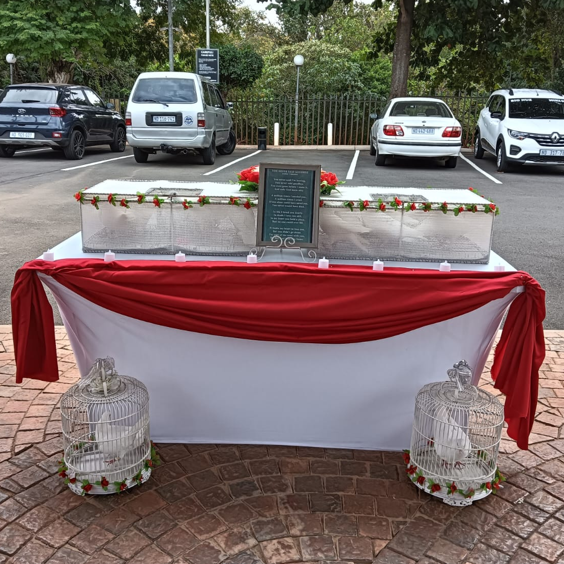 • Pick-up available or delivery can be arranged for an additional fee (from R250). Delivery is available to the funeral 15 minutes before the hearse departs, within a 50 km radius from Phoenix.