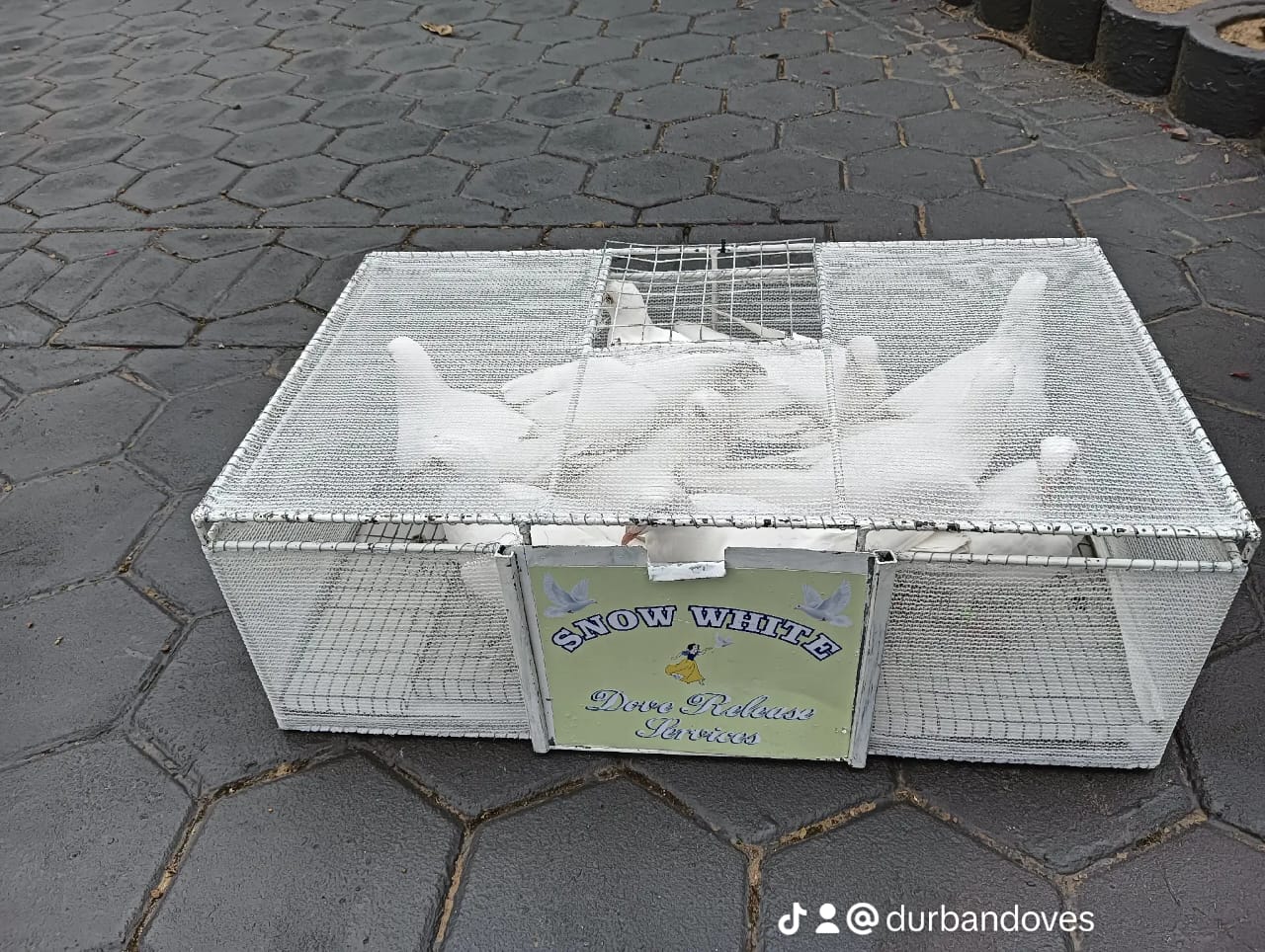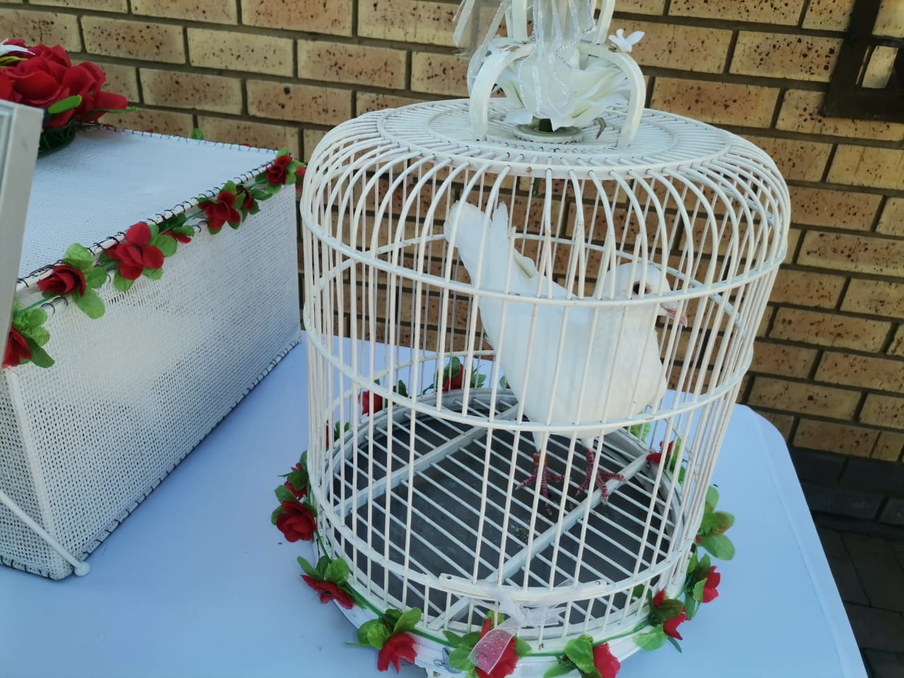 • Doves packed in cardboard boxes (boxes discarded after release) or, if preferred, in a white basket (R350 refundable deposit when the basket is returned in original condition).