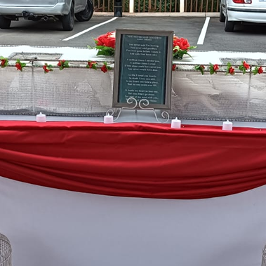 • Features a larger display table with decorative draping (subject to weather conditions and availability of materials).